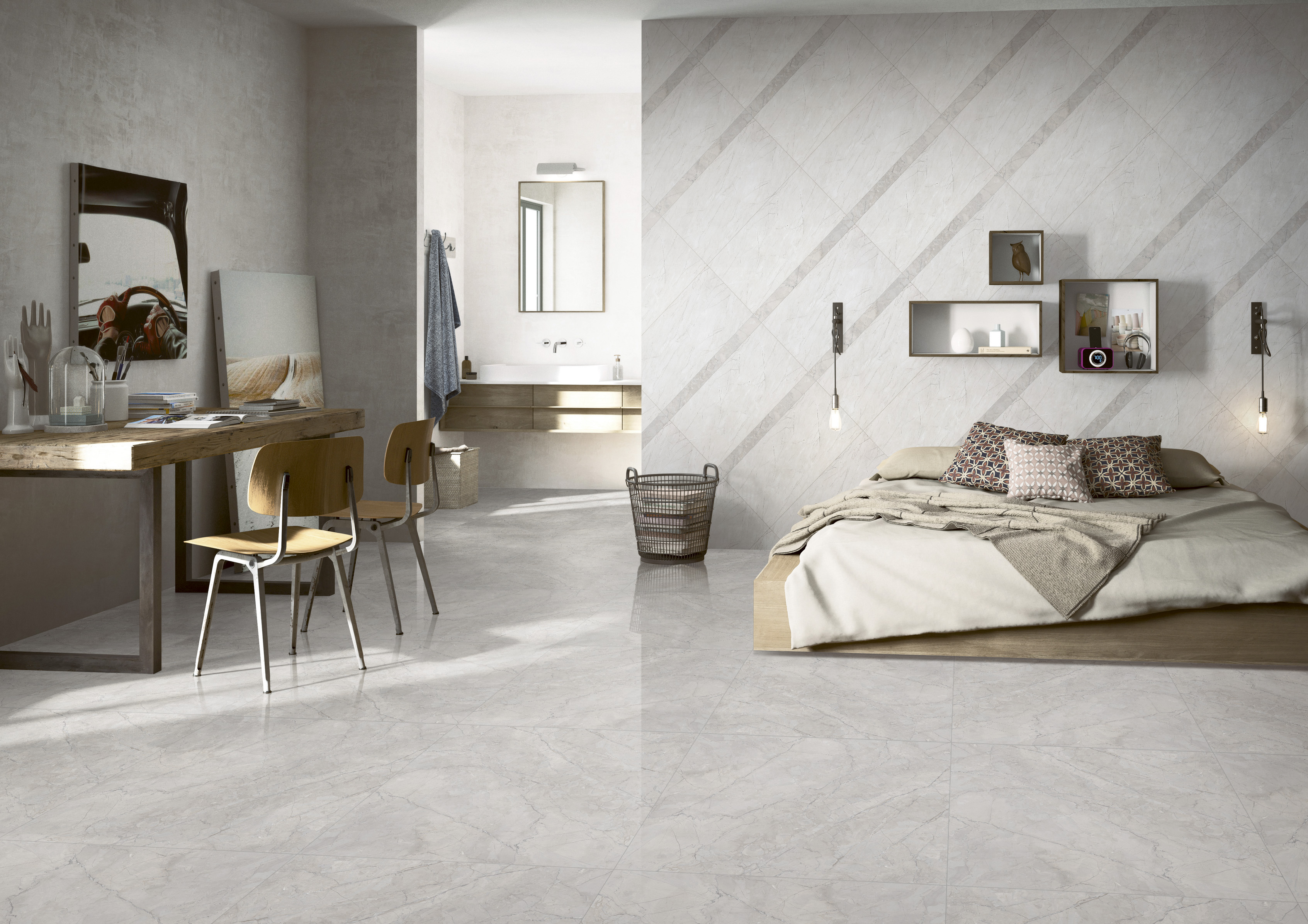 素色系瓷砖卧室效果空间分享: